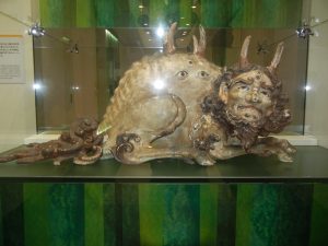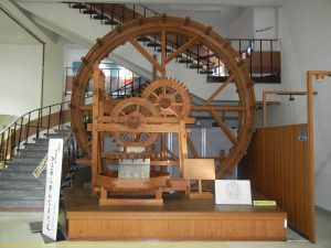 玄関でいきなり江戸時代の大きな「人車製薬機」の歓迎があり、続いてガン封じの神獣「白澤」(はくた